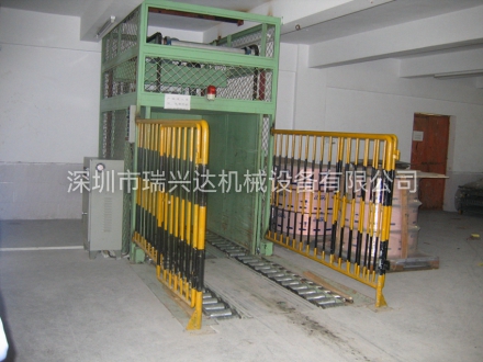 1. 动力采用刹车减速电机提供垂直上下往复运动,安装在升降机顶部或底部;