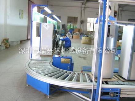 动力及无动力辊道线:采用铝合金边框结构,辊筒表面镀硬铬,以保证耐磨要求。辊筒采用直径为60mm的冷轧无缝钢管,中心距为120mm,支脚间距为1.4米。动力辊道输送机采用短节距p=12.7mm的精密滚子链,辊道上沿较边框高出10mm,使输送平稳可靠,调速动力辊道输送机采用变频调速器控制速度,以实现快速、准确变速。支撑采用钢结构支撑,表面镀锌,其它附件表面采用镀锌或发黑处理。整机具有美观大方,轻巧灵活,安装维修方便等特点。